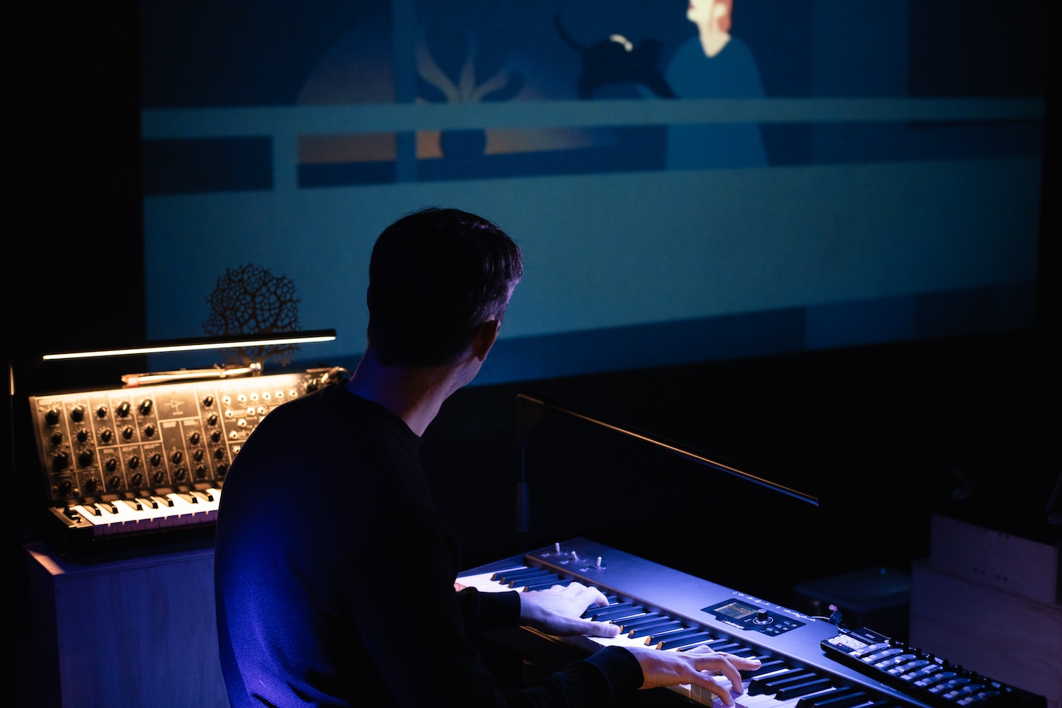 Habiter les nuits est un spectacle hybride, qui croise le documentaire, la musique, l’illustration et des dispositifs numériques. Un film-expérience fabriqué sur scène, qui agence des sons et des images animées en direct à partir de dispositifs à la fois analogiques et numériques. Entre documentaire, cinéma d’animation et nouvelles technologies, c’est une invitation, un saut dans un espace mystérieux, à la rencontre de l’obscurité et de l’inattendu.